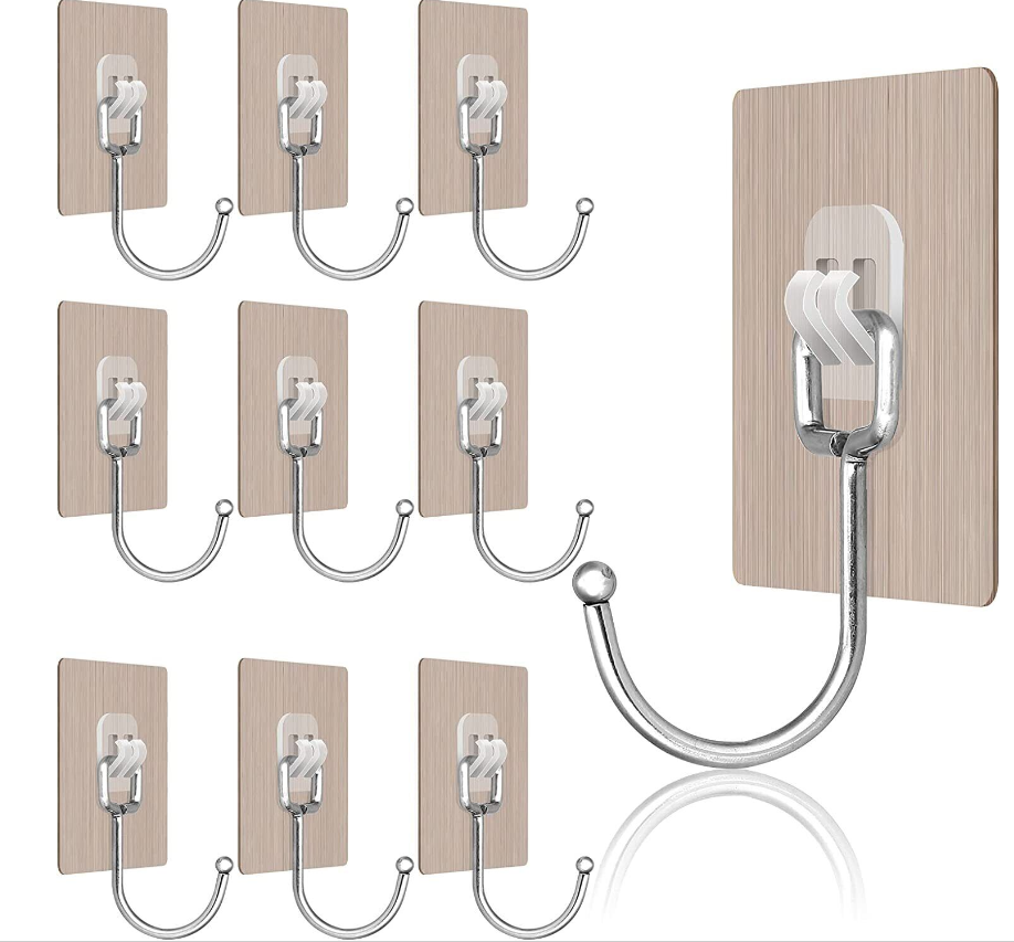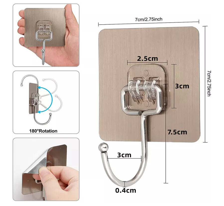 10 Self Adhesive Strong Sticky Hooks Heavy Duty Wall Seamless Stainless Steel UK