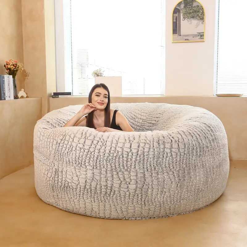 About this item High Quality:Our ultra soft bean bag chair cover is made of eco-friendly flocking PV, which is soft, cosy, environment-friendly, skin-friendly, air-permeable, wear-resistant, stain-resistant and fade-proof. Huge Selection: We have a very large selection of sizes and colors to choose from to fit any decorate.Oversized Sack Cover: 150cm/59.06 x 59.06x 25.59 inches (Cover only)