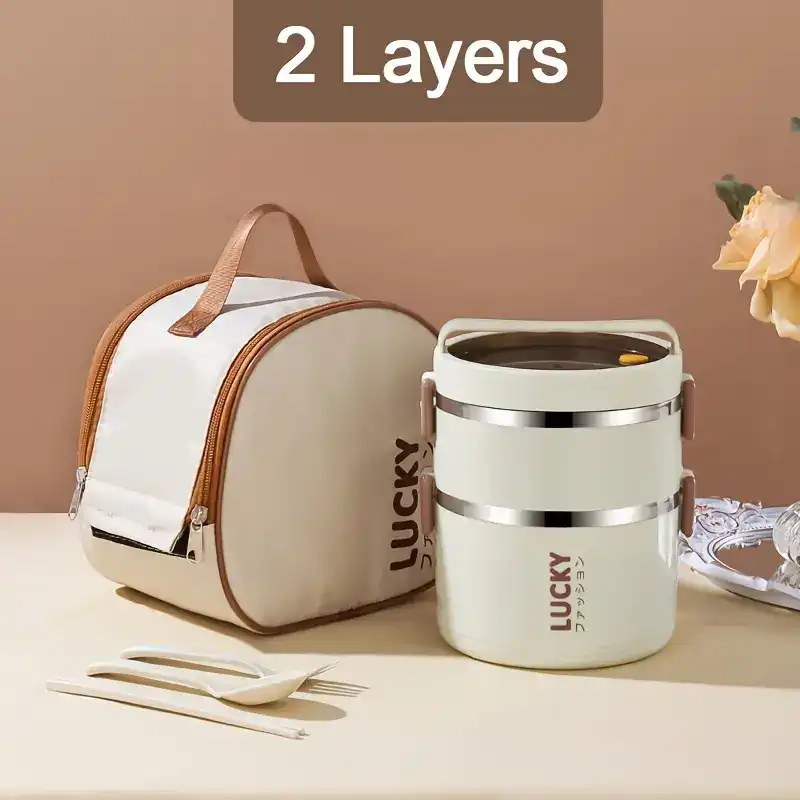 1pc Lunch Boxes, Large Capacity Stainless Steel Lunch Box With Lunch Bag, Portable Thermal Bento Box, For School, Camping, And Work, Kitchen Organizers And Storage, Kitchen Accessories