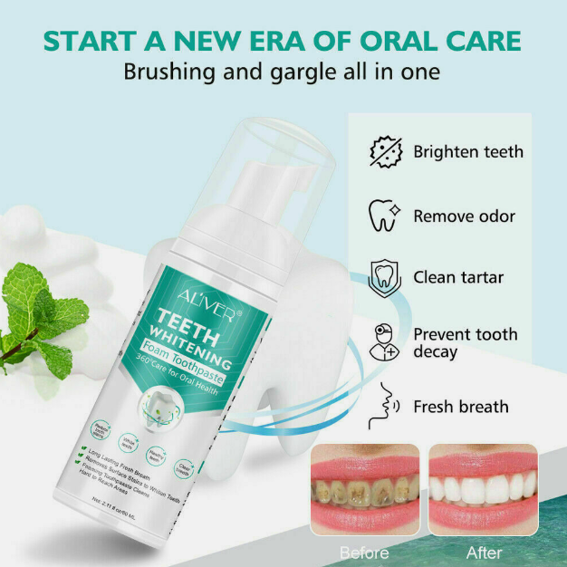 *2. Brush Method: Squeeze proper amount of foam on your toothbrush. Gently brush your teeth and tongue coat for 2-3 minutes, making teeth cleaning and refreshing.