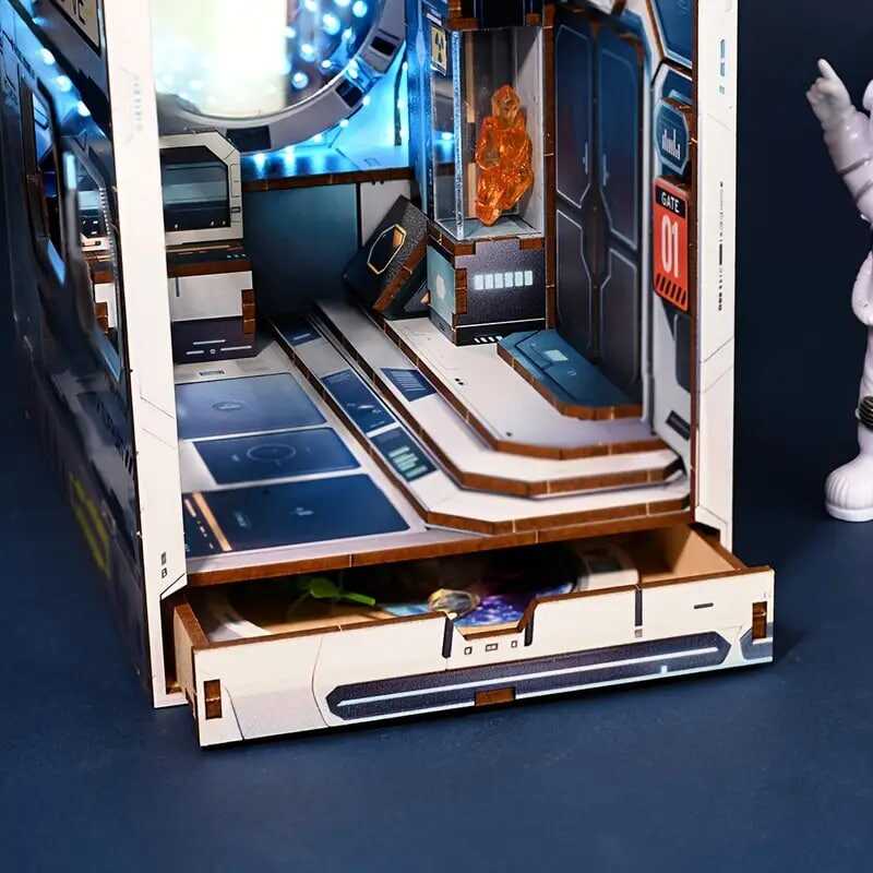 Bookshelf Set Miniature Assembly Scene Model Build DIY Toy House Kit Room, Home Bedroom Insert Decoration With Furniture Wooden Crafts Three-dimensional Jigsaw Puzzle Gift