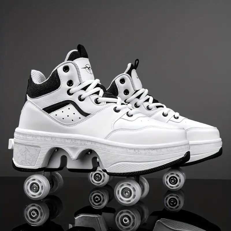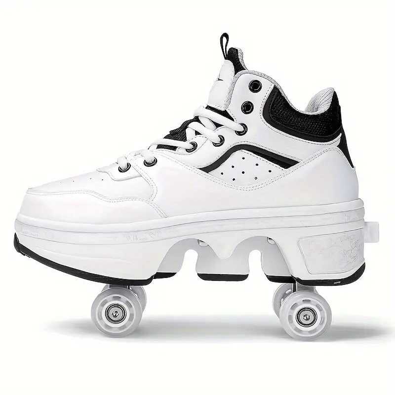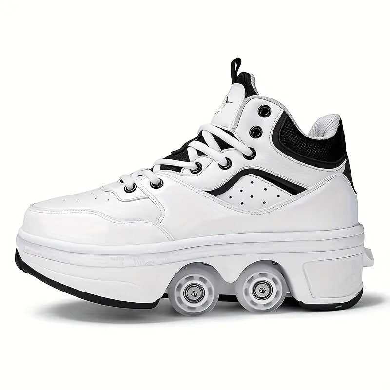Boy's Trendy High Top Roller Shoes With 4 Detachable Wheels, Comfy Lace Up Casual Skate Sneakers