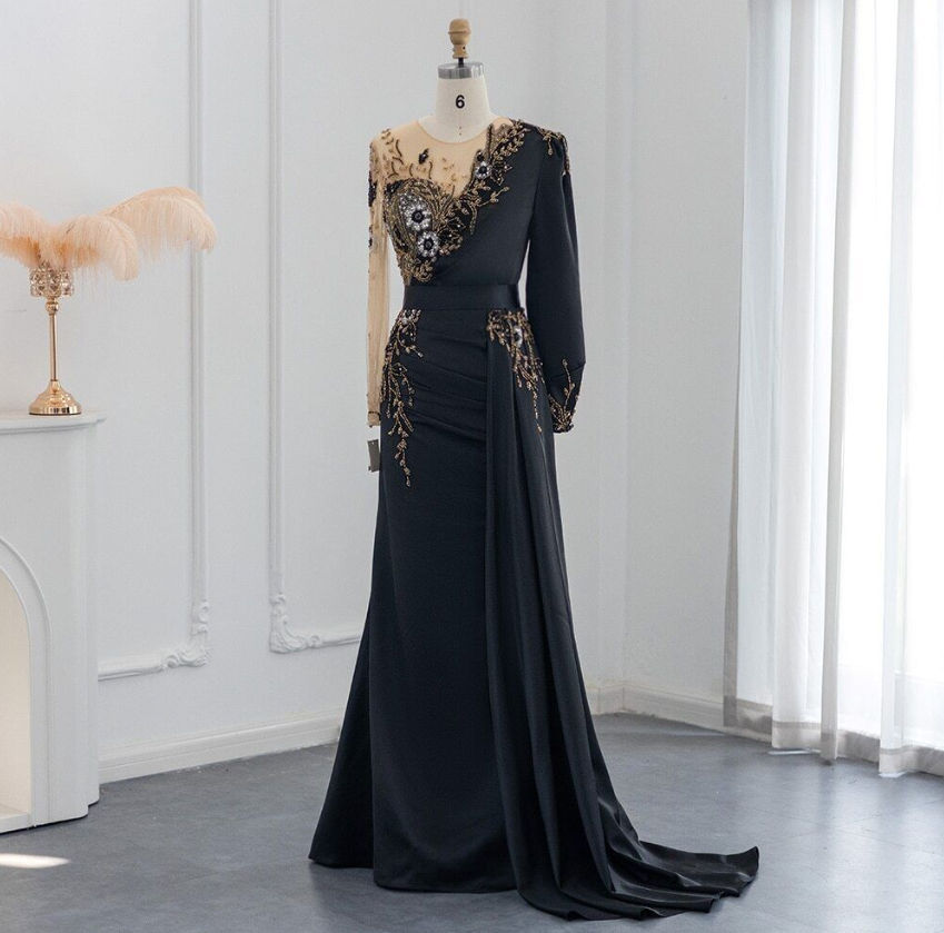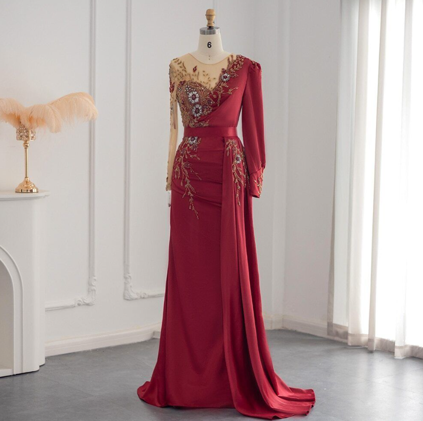 Burgundy Arabic Mermaid Evening Dress Wedding Guest Luxury Dubai Beaded Gowns