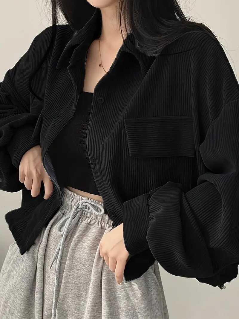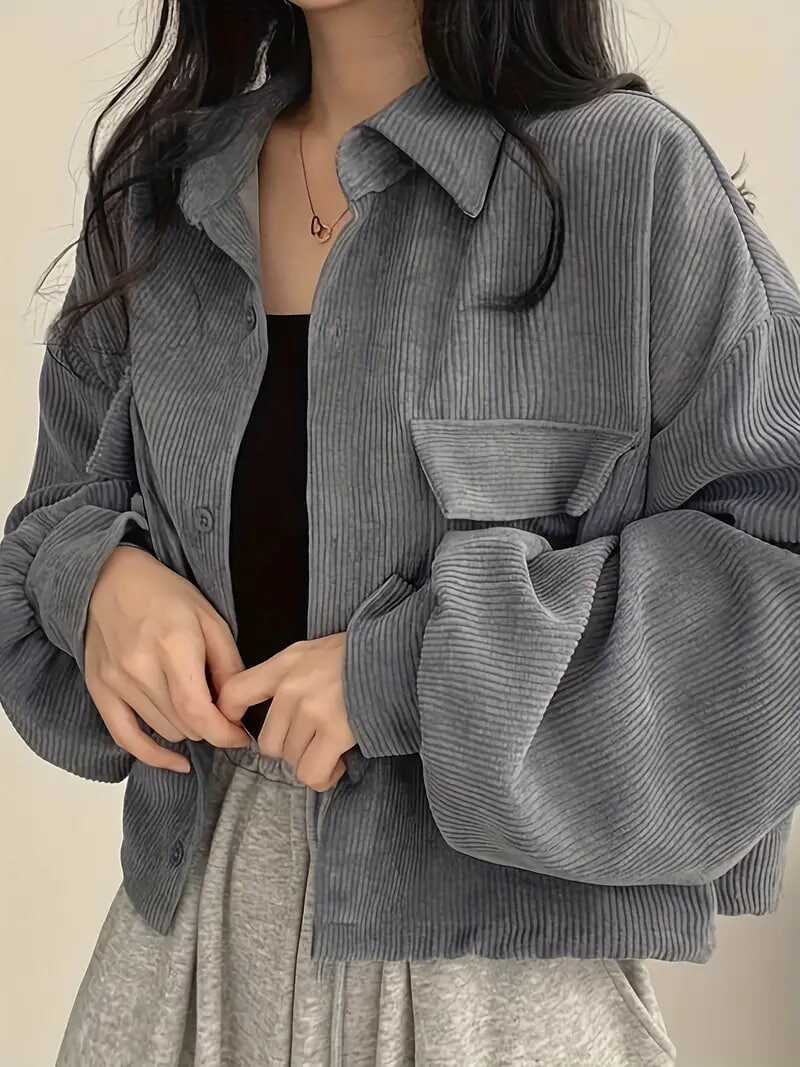 Button Front Flap Pockets Jacket, Casual Long Sleeve Jacket For Fall & Winter, Women's Clothing