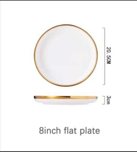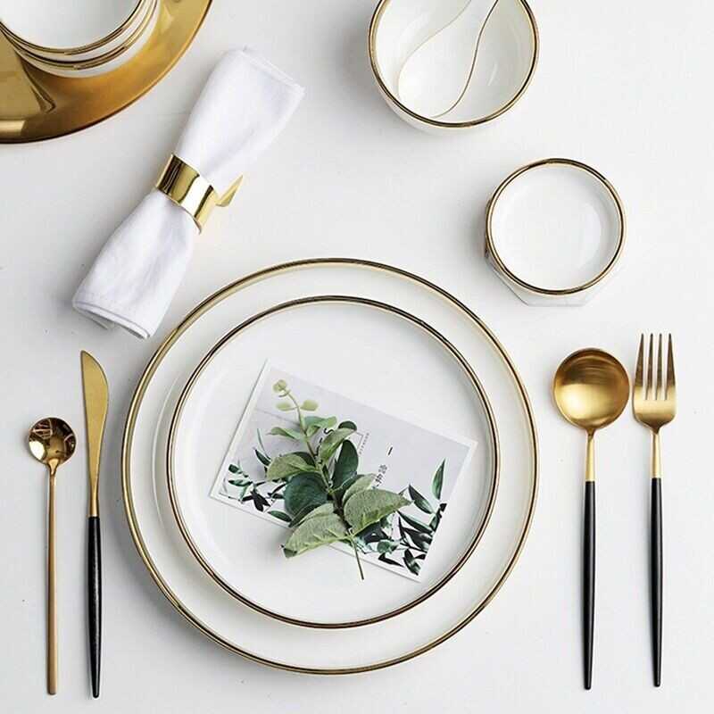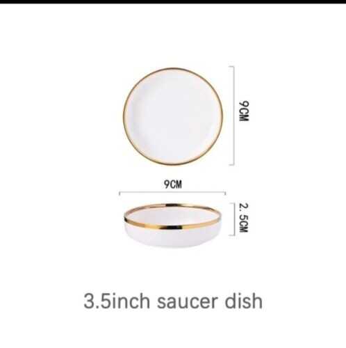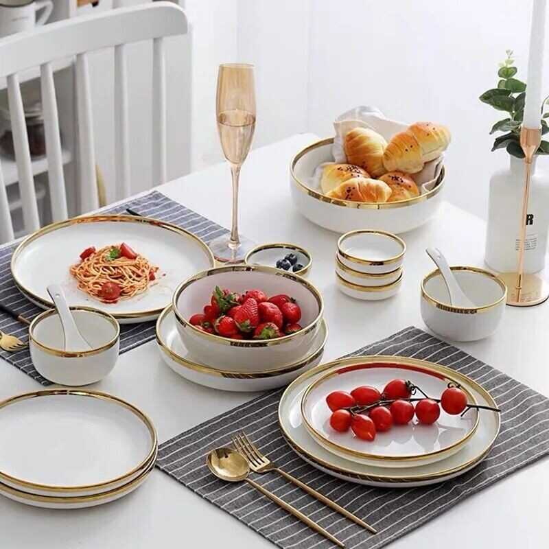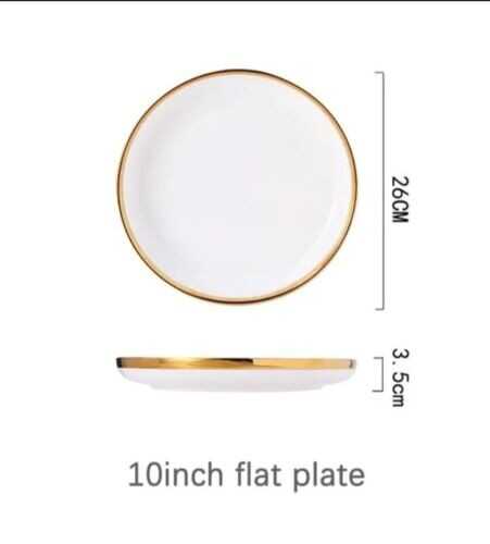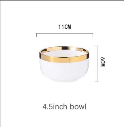 Ceramic Tableware Dinner Set Round White Color With Gold Rim Plates For 1 Person