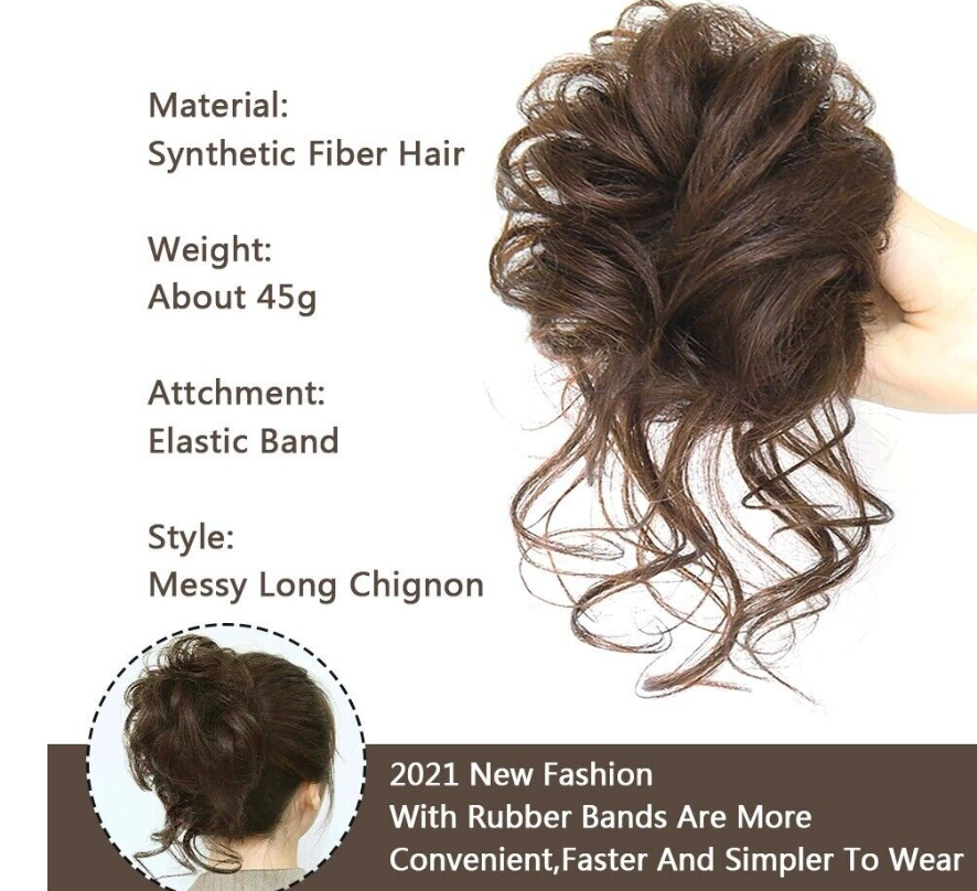 Curly Messy Bun Real as human Hair Piece Scrunchie Updo Wrap Hair Extension