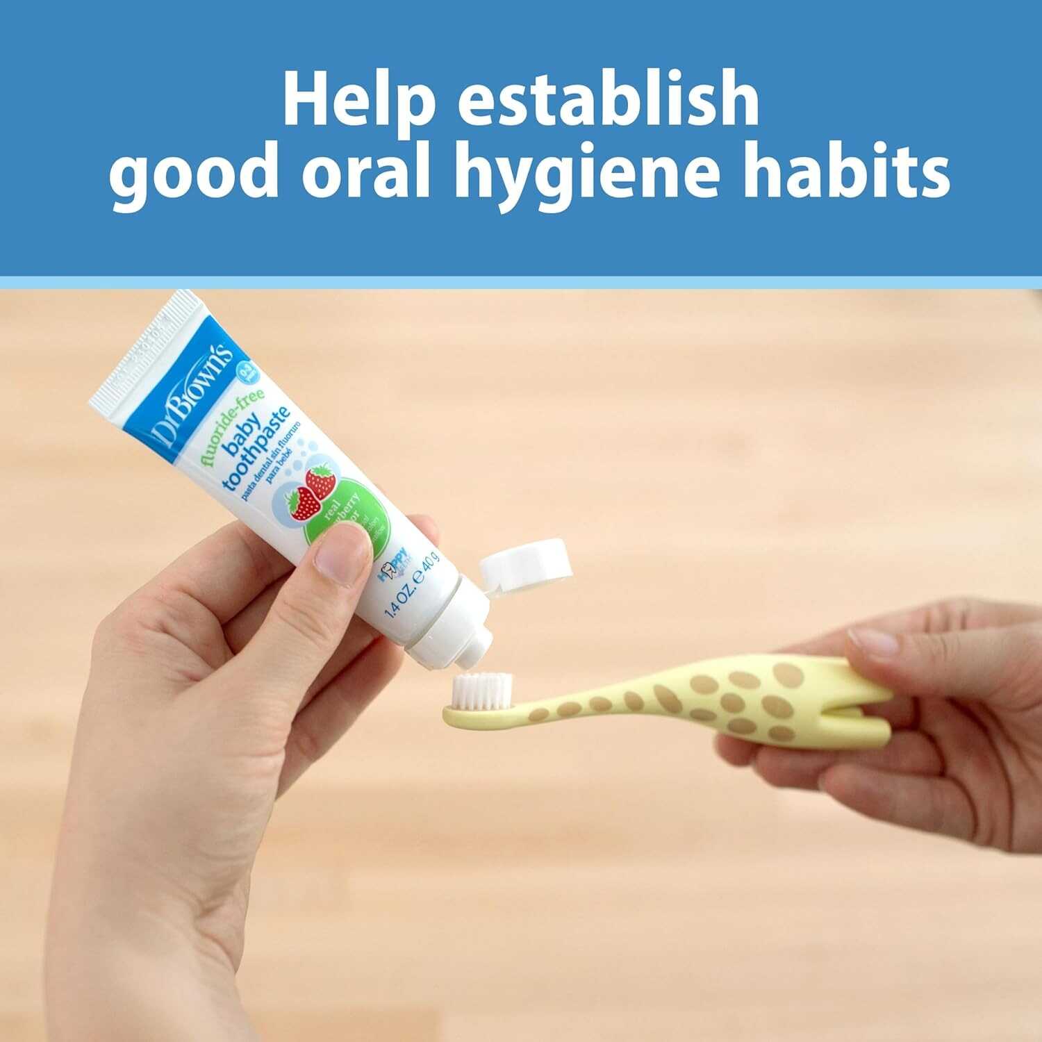 Establish good oral hygiene habits with baby with Dr. Brown’s Infant-to-Toddler Giraffe Toothbrush. The toothbrush is sized just right for small mouths and little fingers - helping baby build the skills they need to reach independent brushing. Super-soft bristles safely and gently clean baby’s first teeth and gums while the durable, yet soft material of the brush is gentle on sensitive mouths. Use the giraffe’s four stable legs to securely store upright and prevent surface contact. Wash prior to each use. Replace every 3 months or when bristles appear worn. Intended for ages 0-3 years. BPA free.
