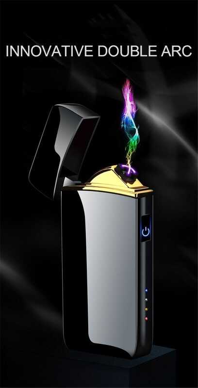 Electric Dual Arc Metal Cigarette Lighter USB Rechargeable Plasma Windproof