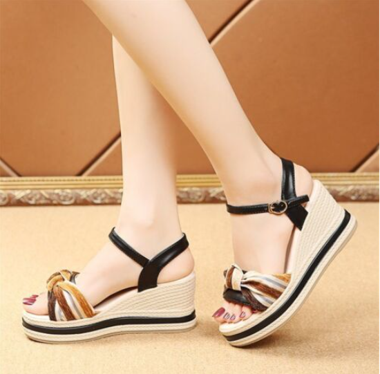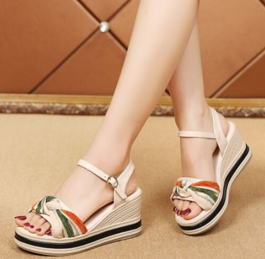 Fashion Women Sandals Wedge Heel Open Toe Ankle Strap Platform Shoes Comfy Beach