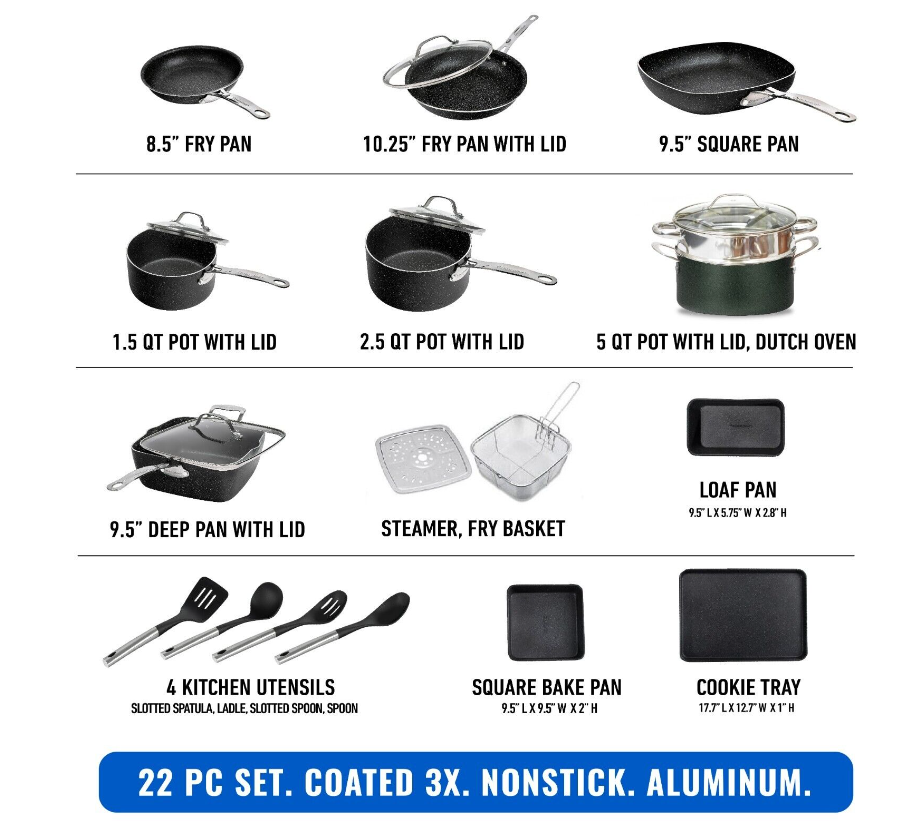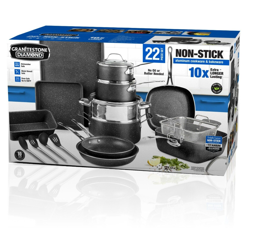 Granitestone Diamond 22-Piece Non-Stick Aluminum Cookware Set with Utensils