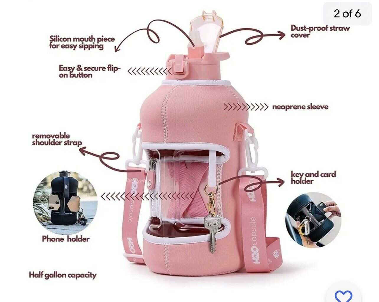 H2O Capsule 2.2L Half Gallon Water Bottle with Storage Sleeve and Removable. eb2