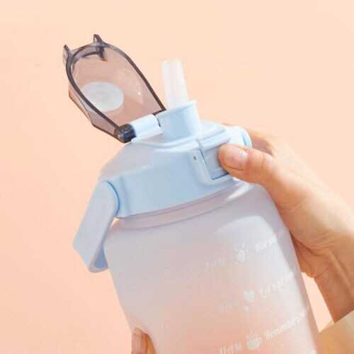 Half Gallon 64 OZ Motivational Water Bottle with Straw Time Marker BPA Free