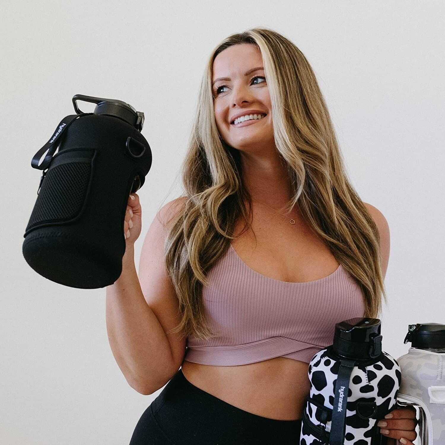 Half Gallon Water Bottle with Straw and Chug Lid-2.2L Gym Water Jug, Abyss Black