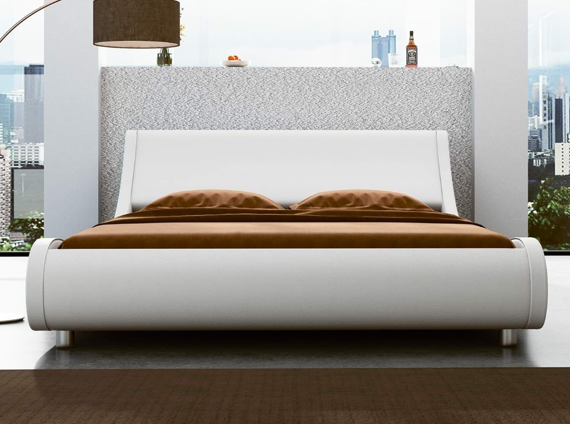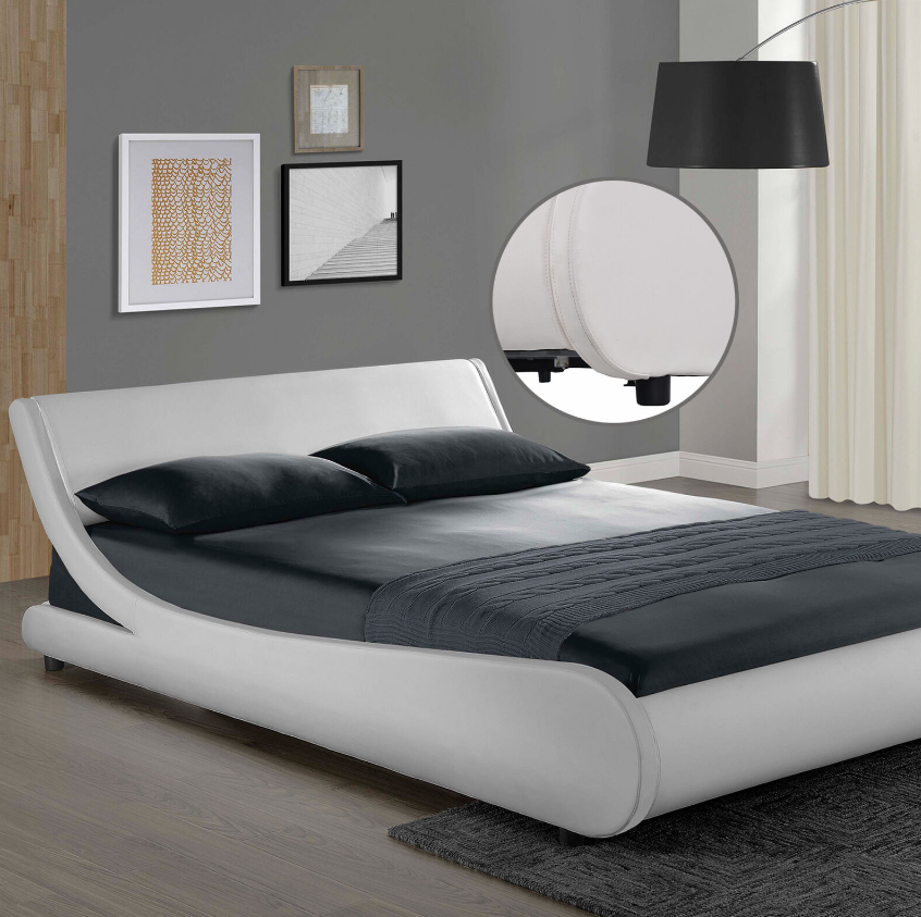 【Bedroom Refresh】 Wave-like silhouette of Our low profile bed is one of a kind addition to any contemporary bedroom. This upholstered platform bed is fully wrapped in soft PU leather for ultimate comfort and looks, and features a slatted base.