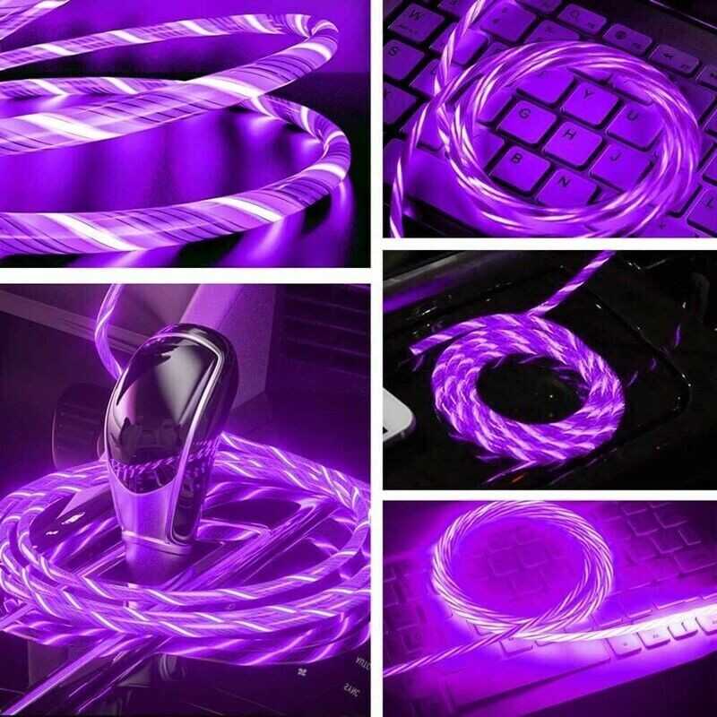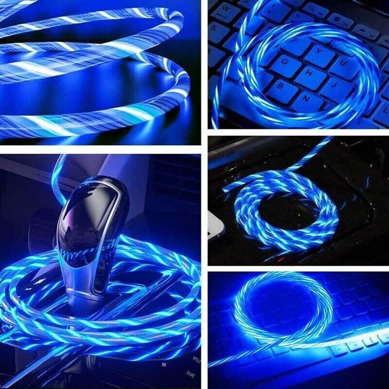 LED Light Up Charging Charger Cable USB Data Cord iPhone Android Type C Phone