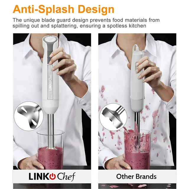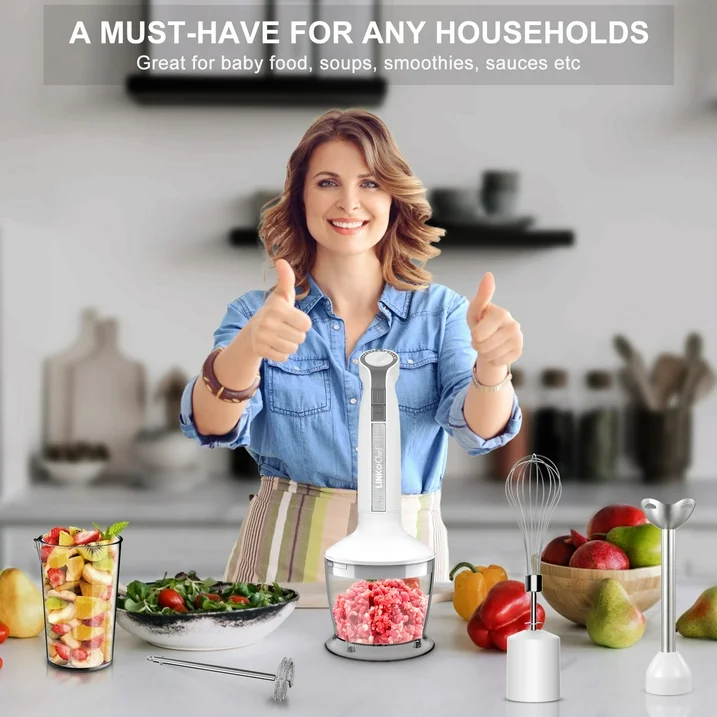 LINKChef Immersion Blender, 20-Speed 1000W 5-in-1 Immersion Hand Blender, Stick Blender with Turbo Mode, Baby Food Processor with Chopper, Blender for Kitchen with 600ml Beaker (White)
