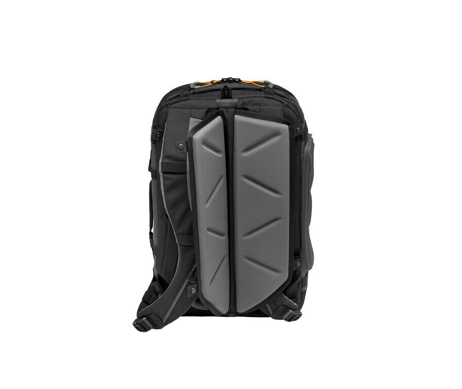 This black Lowepro Pro Trekker BP 350 AW II Backpack is a rugged bag that is designed to comfortably and securely carry your mobile photo studio while meeting the carry-on requirements for most international and US airlines. Its spacious main compartment features an adjustable partition system with 11 dividers that can fit a DSLR or mirrorless camera with a 70-200mm f/2.8 lens, three to four additional lenses, a shoe mount flash, and a backup camera. Alternatively, the main compartment can be configured for a DSLR or mirrorless camera with a 70-200mm f/2.8 lens, as well as a folding drone kit. To enhance the ability to organize this backpack's contents, a Lowepro Gear Box equipment pouch is included. Cords, adapters, and other essentials for the devices carried by the Pro Trekker BP 350 AW II can be inserted within the Gear Box, keeping them organized under the partition system.