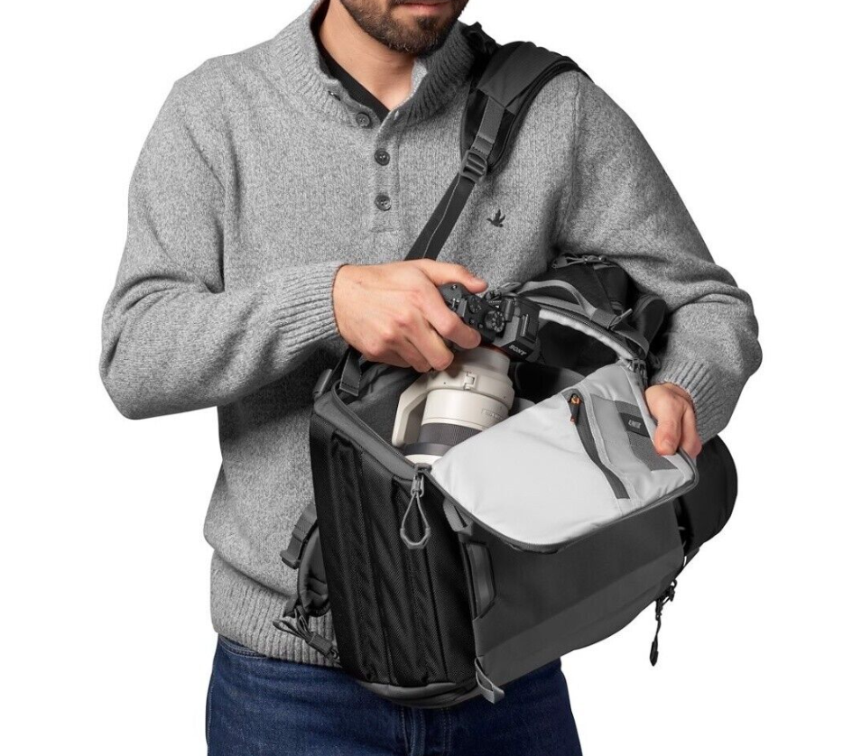 • Dual side access panels offer quick access to camera and gear