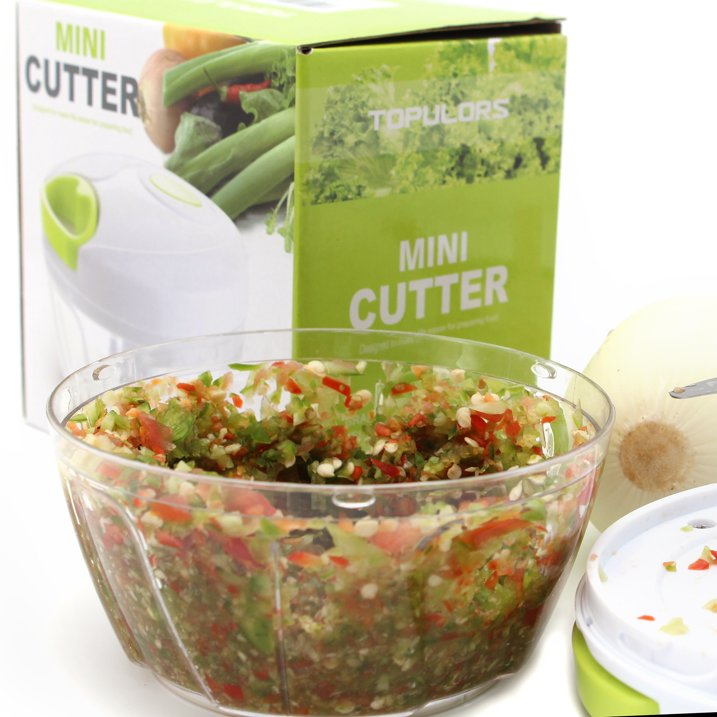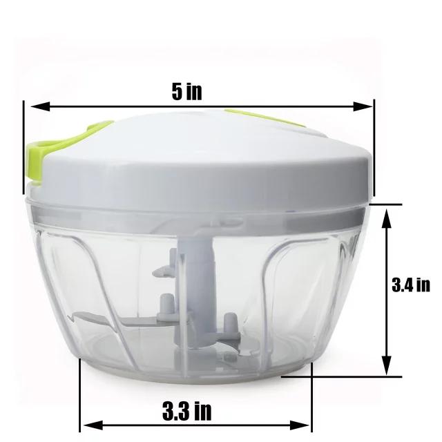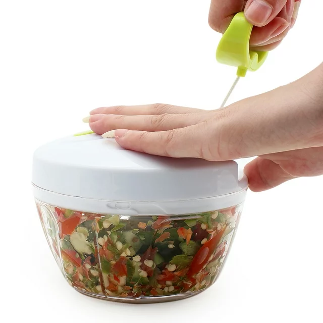 This manual food chopper takes the hard work out from chopping vegetables, fruits, nuts, and herbs. It is the perfect onion chopper that doesn't make your eyes watery. In just a few pulls, the blades begin to chop your ingredients, with no electricity required. NewThis versatile tool makes quick work out of tough cutting tasks, and it is easy to assemble, use and store. If you hate getting watery eyes when chopping onions, this will solve it all for you. With the lid on top and the onions kept inside of the bowl, you can effortlessly chop away without making,quick and easy way to chop fruits, vegetables, or create fresh salsas, pests, coleslaws, salads in just seconds.