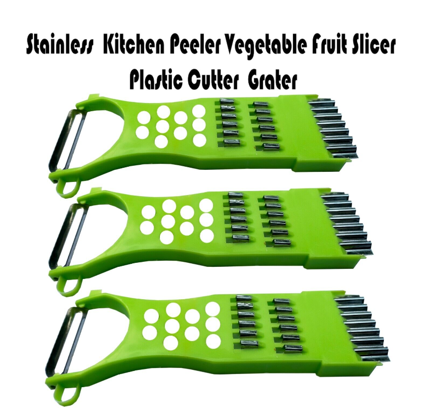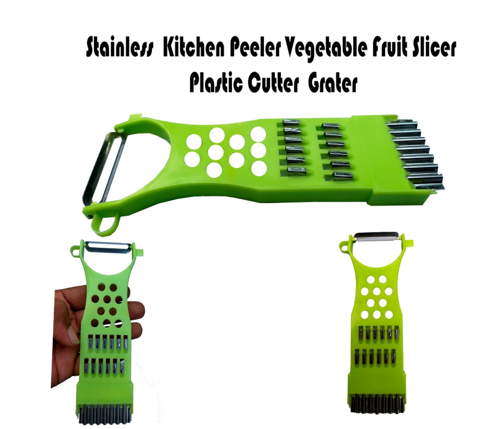 Kitchen Heavy Duty Potato Peeler Vegetable Grater Fruit Potato Slicer Cutter  This slicer is designed for various purposes, can use it as a peeler, grater, slicer and cutter .It can be used to peel vegetables and fruits like potato, carrot, etc. Can be cleaned easily with water.