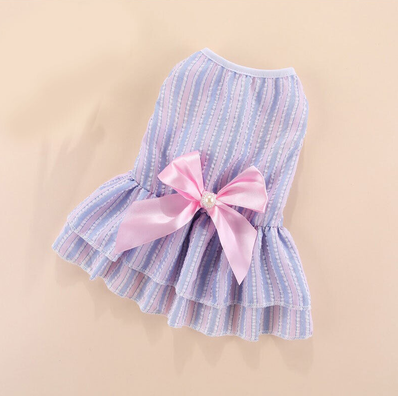 Pet vertical stripes butterfly skirt,polyester material,comfortable and skin-friendly fabric.Cute and sweet,pet dogs are even more cute.