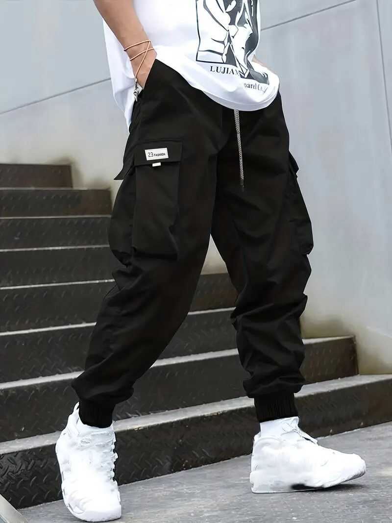 plus size mens drawstring cargo pants letters print multi pocket design perfect for outdoor activities details 0plus size mens drawstring cargo pants letters print multi pocket design perfect for outdoor activities details 0