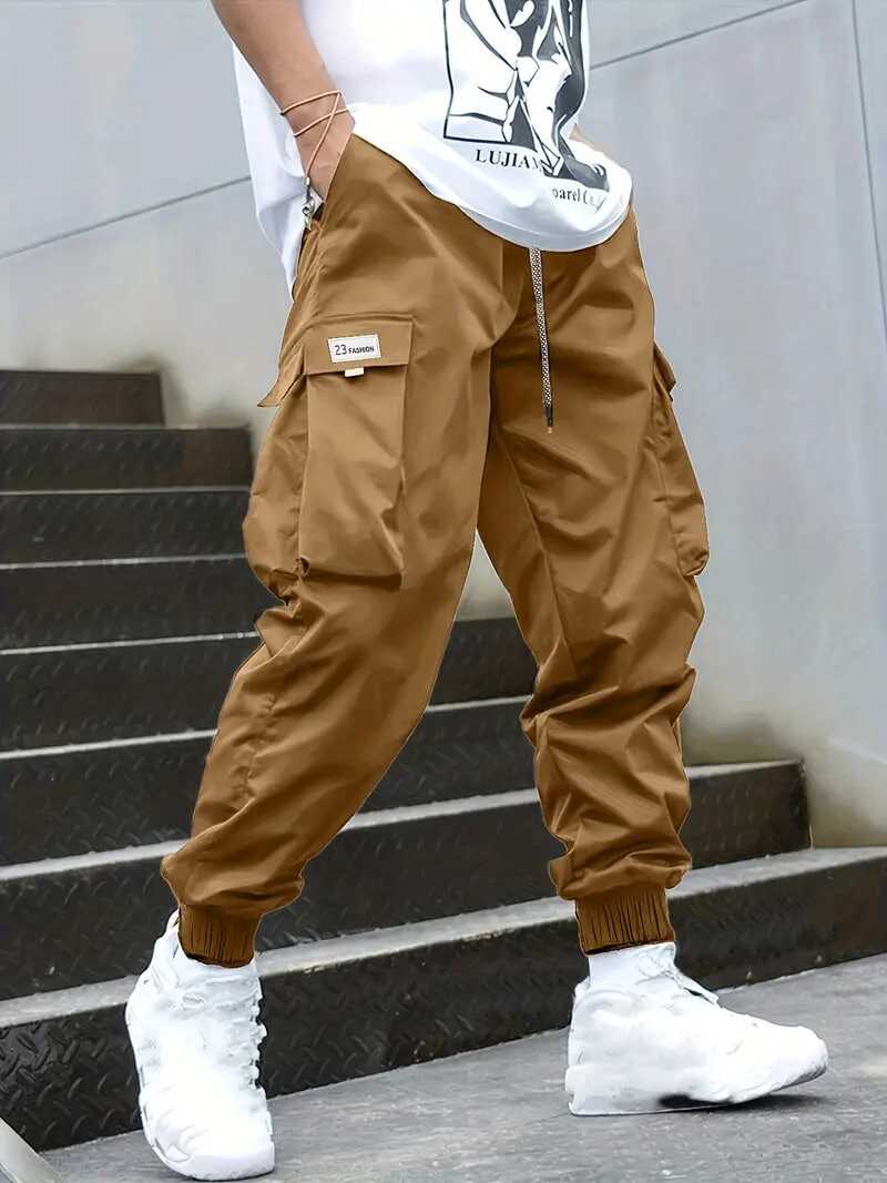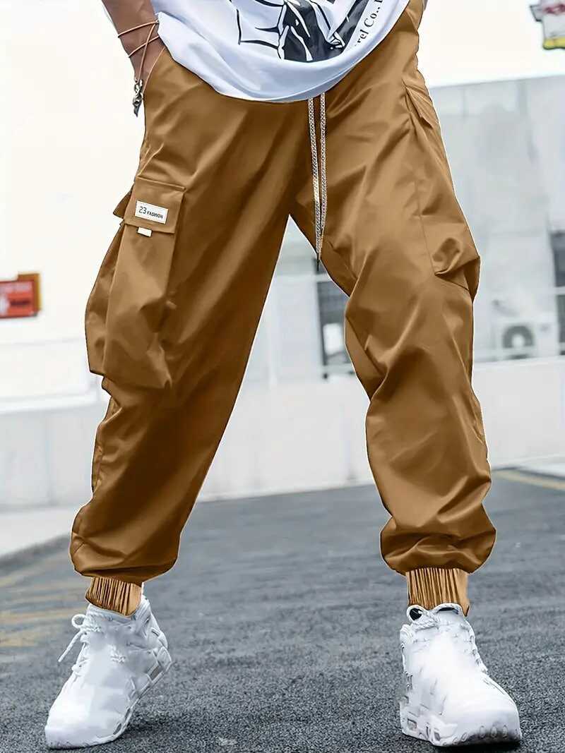 plus size mens drawstring cargo pants letters print multi pocket design perfect for outdoor activities details 1plus size mens drawstring cargo pants letters print multi pocket design perfect for outdoor activities details 1