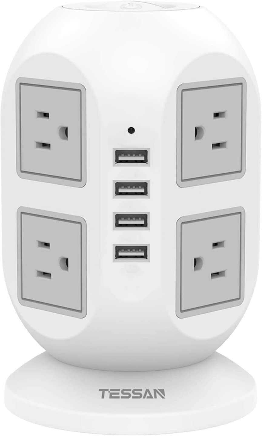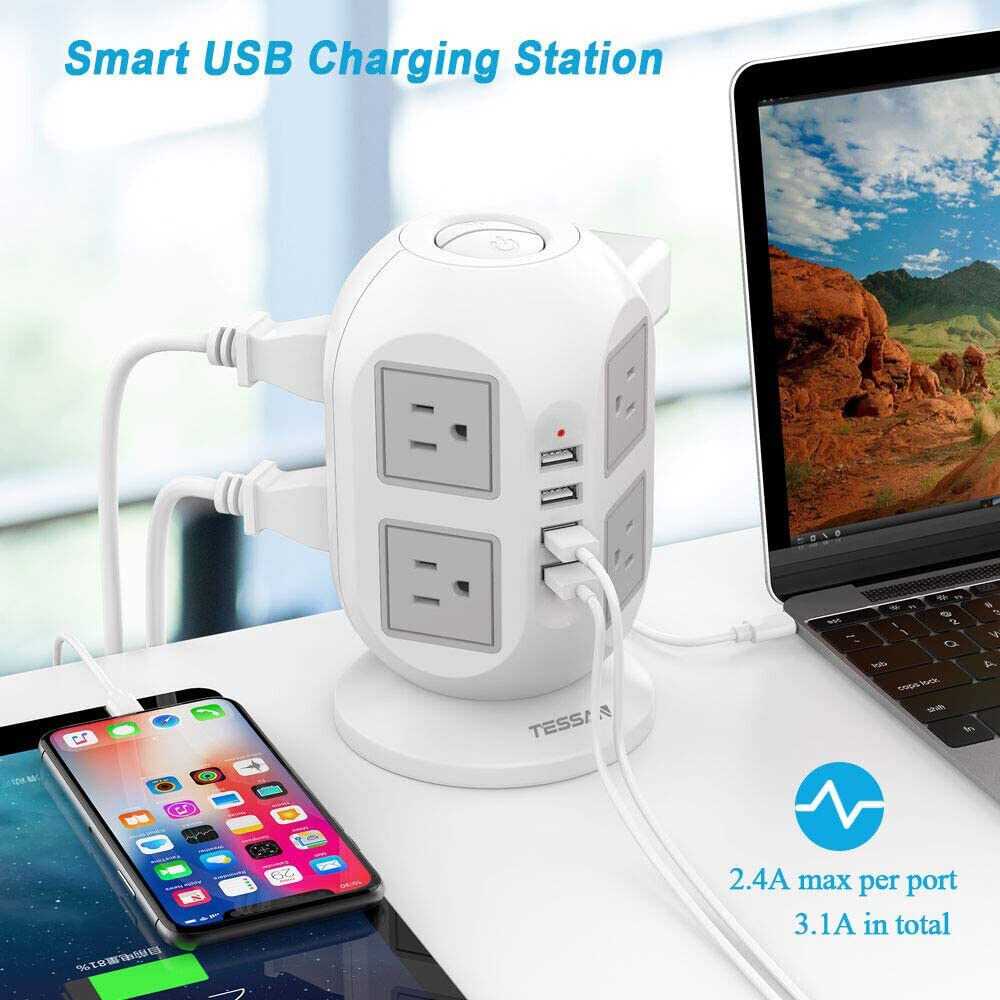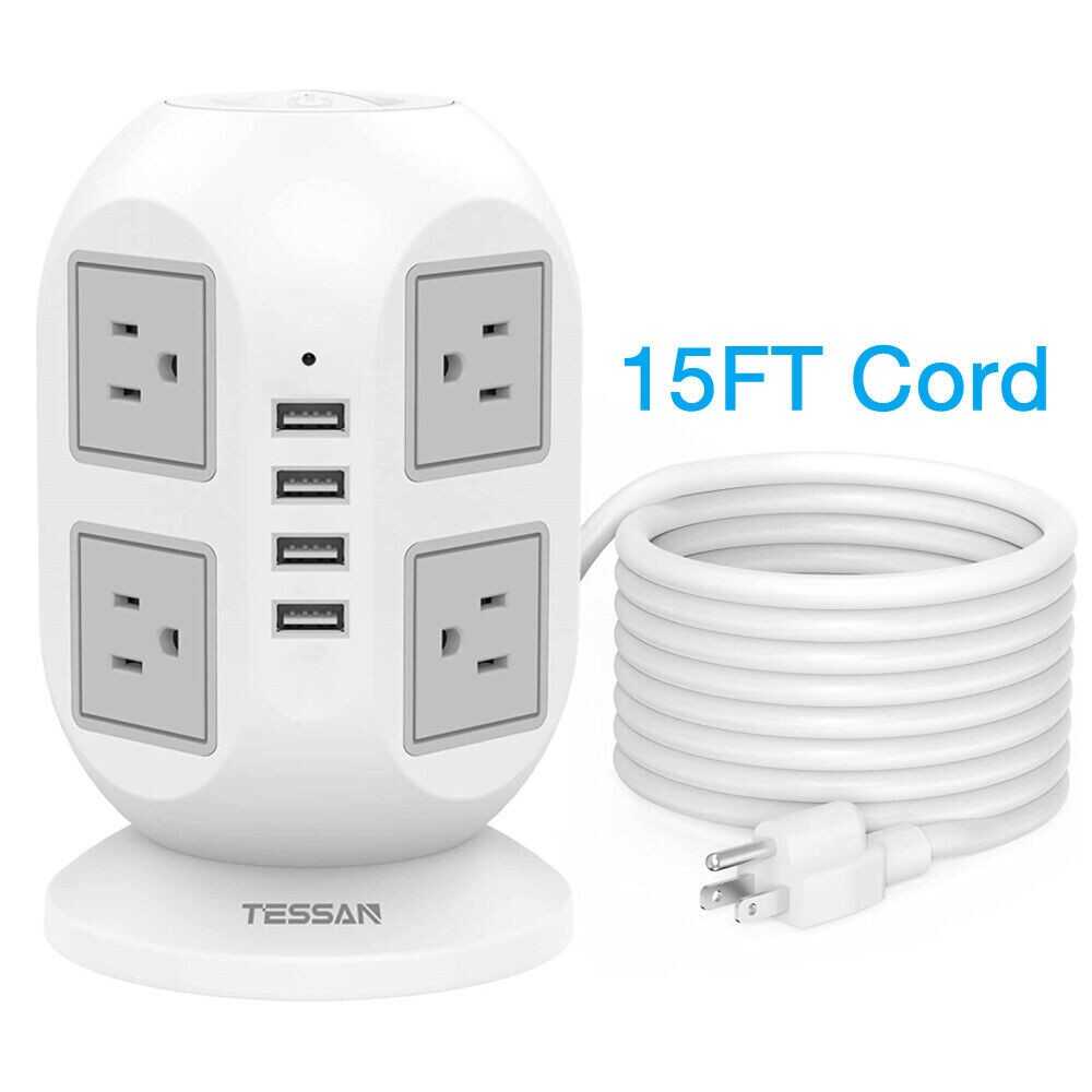 Power Strip Tower Surge Protector with 8 Outlet 4 USB 6/10/15 FT Extension Cord