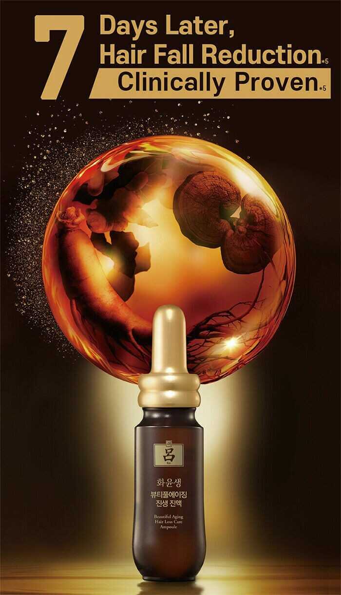 This two-month usage Ampoule is formulated with 84% high concentration of herbal ingredients such as whole Korean Ginseng, Lingzhi, Wilfordi Root and Ginger to reduce hair fall & strengthen weakened scalp & hair.