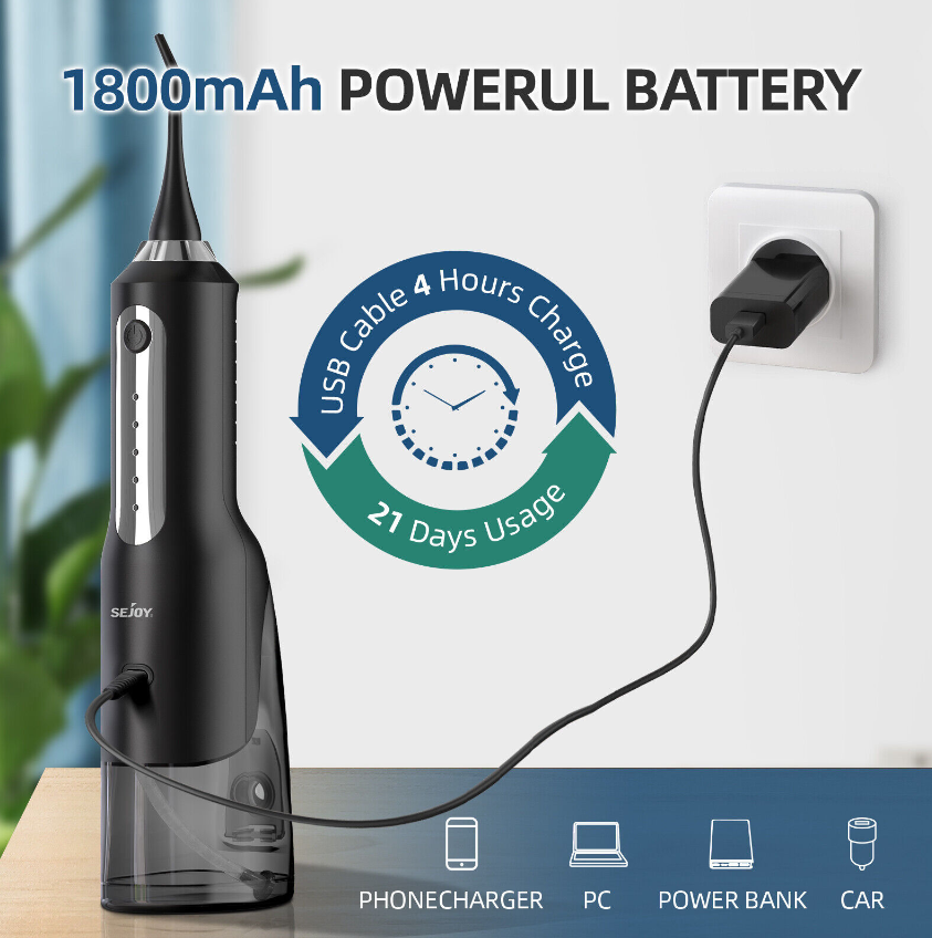 • 【With Unique Pulsation Technique & Deep Cleaning】SEJOY water flosser can offer 1000-1400 times/min high-pressure water pulse, efficiently removing 99.99% plaque and food residue thoroughly deep between teeth or gumline in every corner where traditional brushing can not reach, keeps your breath fresh and improves your gum heal