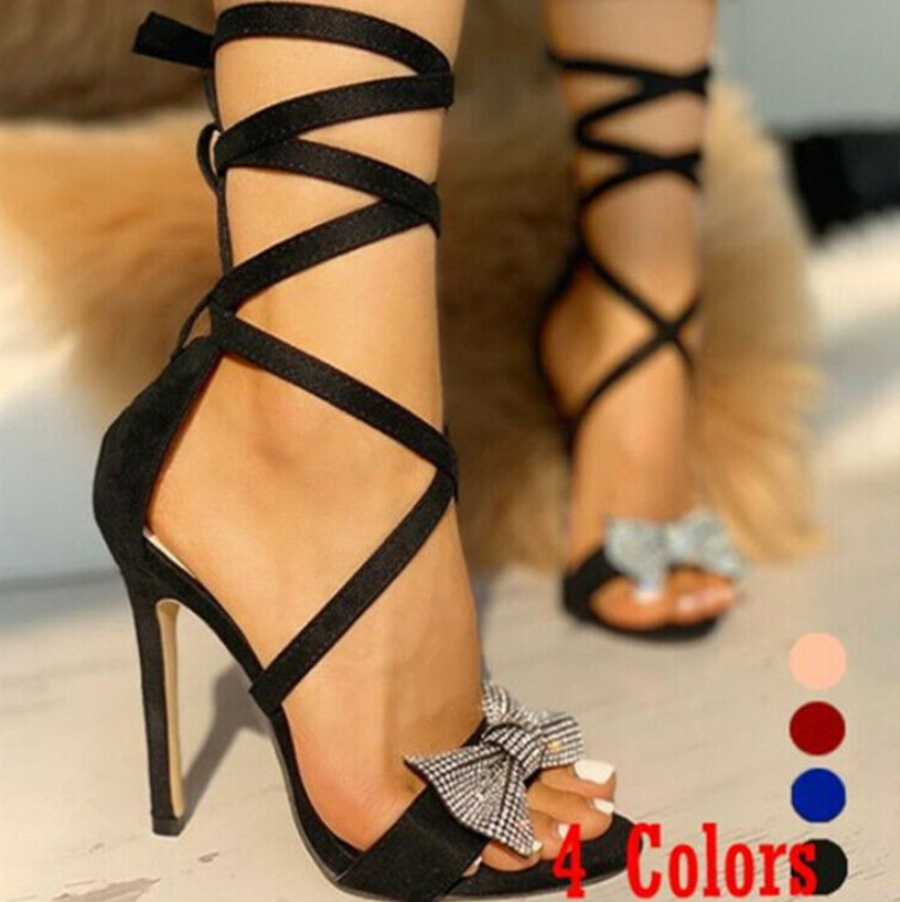 Sexy Ladies Open Toe Stiletto Bow Knot Lace-Up Ankle Straps Sandals High Heels