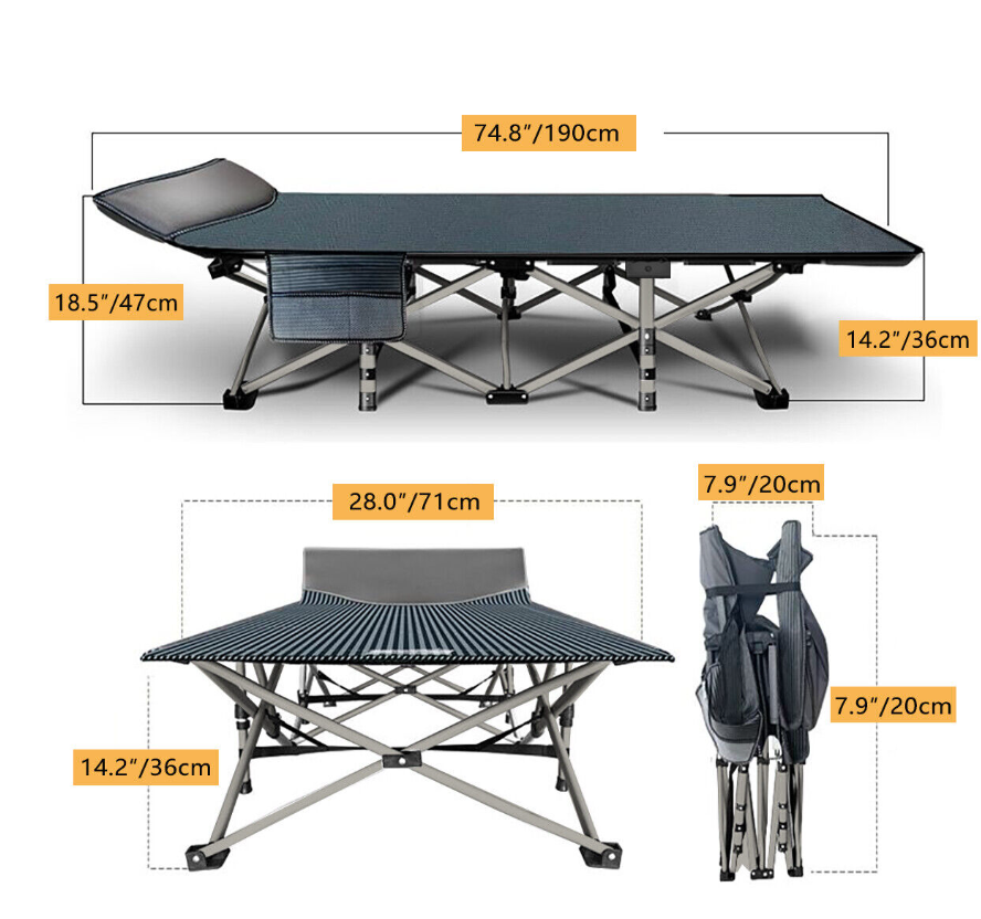 • ?【WIDE RANGE OF USES】:ABORON camping cot for adults is perfect for overnight hiking, trekking, hunting, road trip,home relaxing,or office break uses.A great companion to take to the Pool, Lake, RV, Campsite, Patio, Deck, Tent or Cabin.It can be used as a bed for your guest as well.Super convenient!!