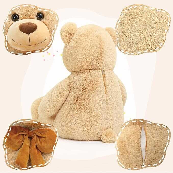 • Premium Quality: The big teddy bear is made of skin-friendly plush fabric, filled with 100% PP cotton that meets quality standards. The eyes are firm and shiny, the zipper is smooth and durable. No shedding, no fading, safe, fluffy, super soft and cozy to touch. Be assured to cuddle,snuggle,play,sleep with the giant teddy bear as your like.