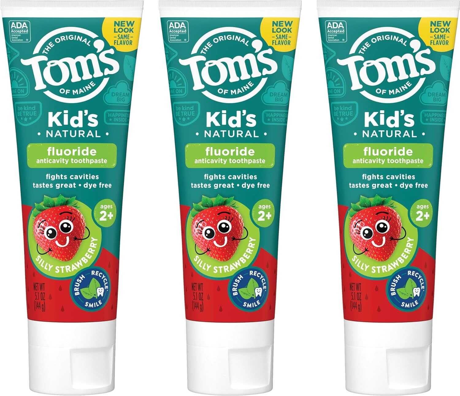• WHAT YOU'LL GET: Three 5.1-ounce tubes of Tom's of Maine Kids Fluoride Toothpaste in Silly Strawberry Flavor
