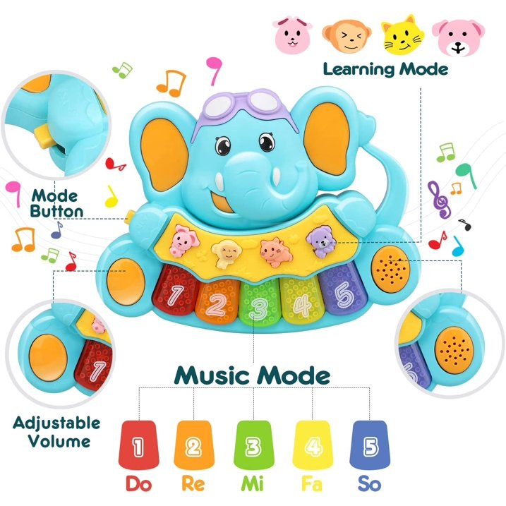 TOY Life Baby Piano Toys, Baby Toys 0 3 6 12 18 Months, Elephant Infant Toys, Newborn Baby Musical Toys, Light Up Toys for Boys Girls Toddlers, Baby Gifts for 0 3 6 12 18 Months, Baby Einstein Piano T