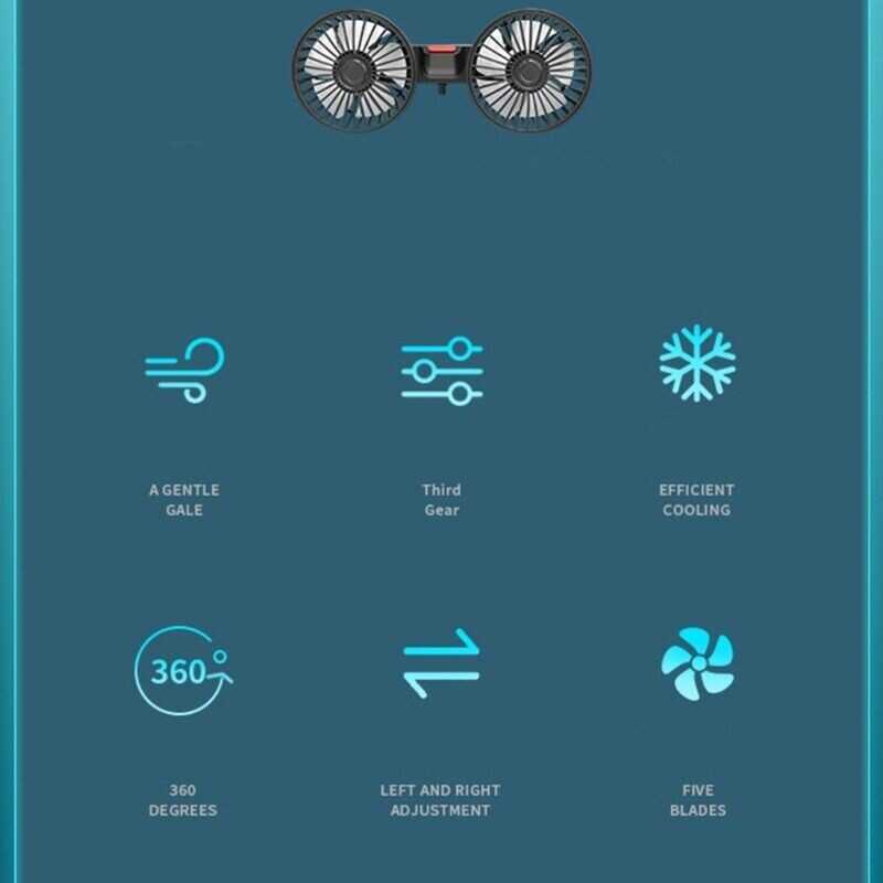 USB Fan Car Electric Clip Cooling Fans USB Powered 5V 2A 360 Degree Rotatable