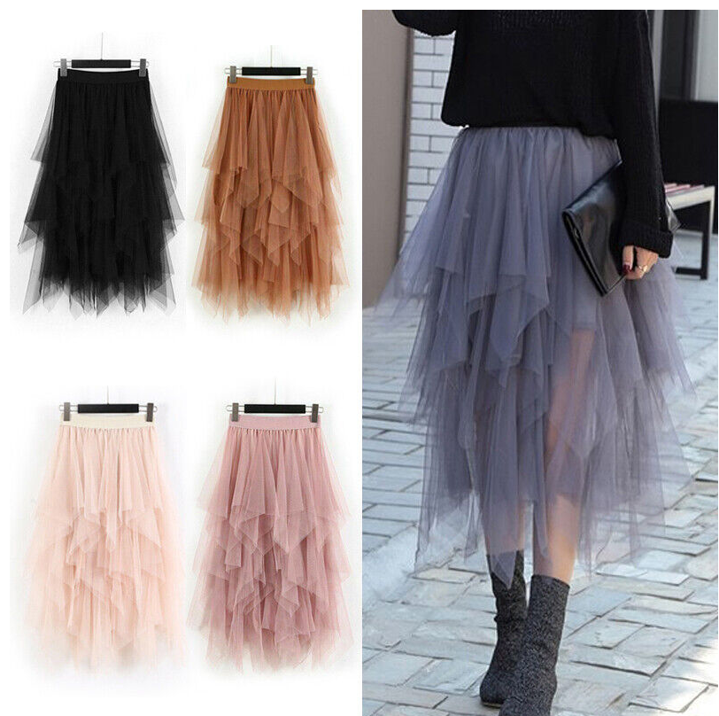 Product Name: Women Tulle Mesh Skirt Product Category: Skirt Color: White, Black, Pink, Khaki, Gray, Apricot Material: Mesh Size: Free Size: Length 82cm, Waist 62-102cm, Lining 45cm Packing: Opp Bag Packing List: Tulle Mesh Skirt x 1
