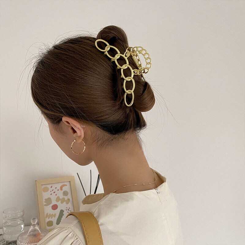 Women Hair Clips Claw Large Geometric Metal Hollow Out Hair Accessories Elegant
