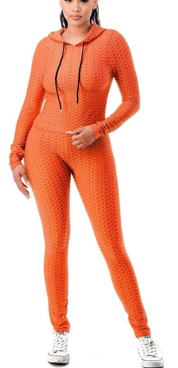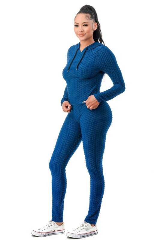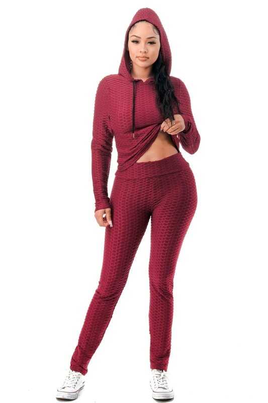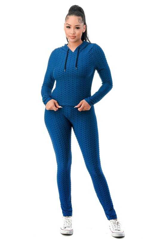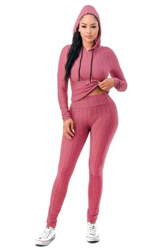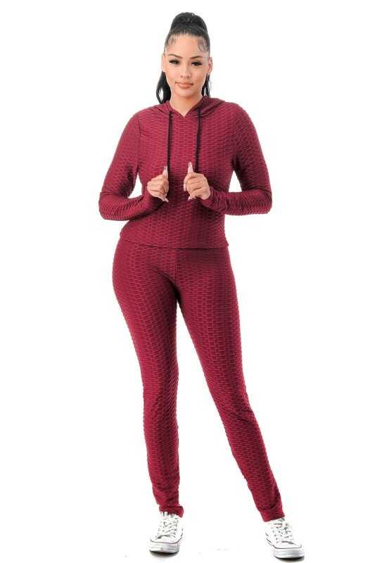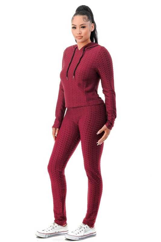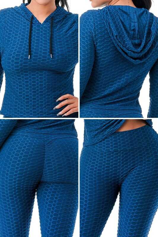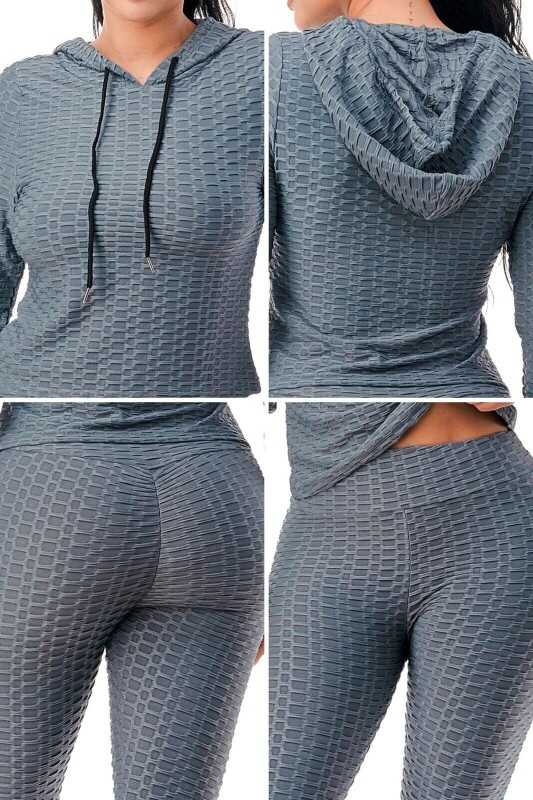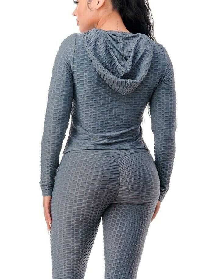 Women Texture 2 Piece Outfit Hoodie Top and Yoga Leggings Pants Workout Set