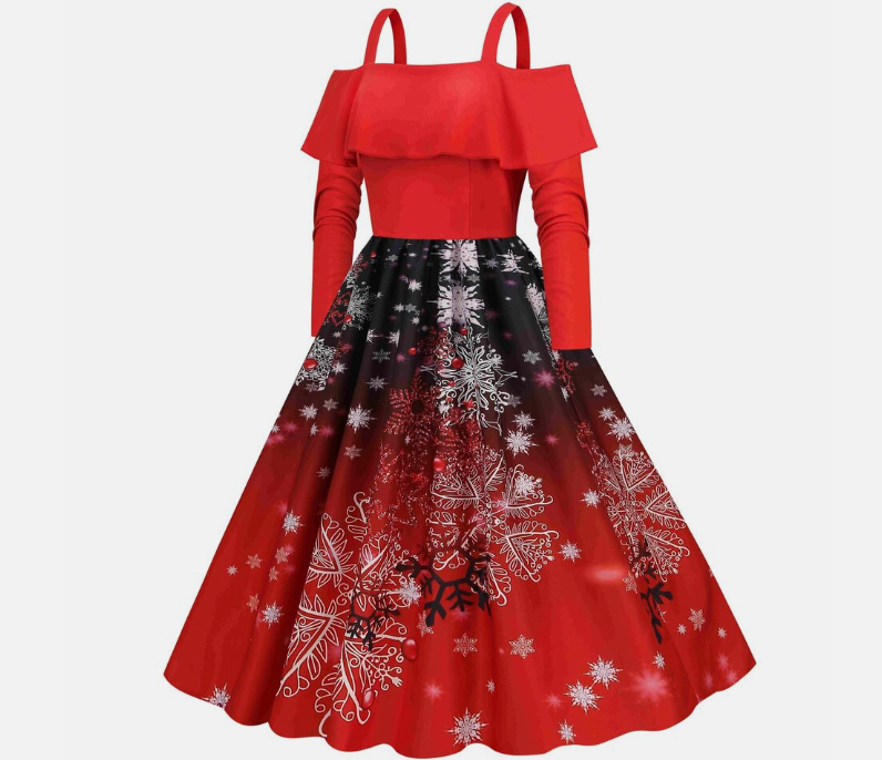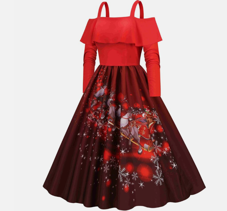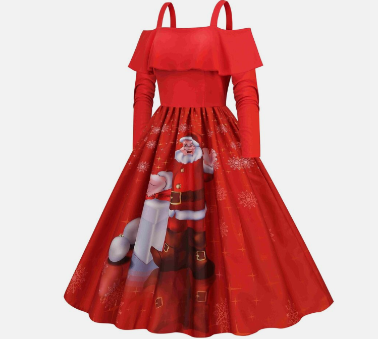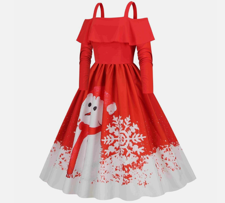 Women Vintage Christmas Dress Xmas Rockabilly Cocktail Party Flared Midi Dress