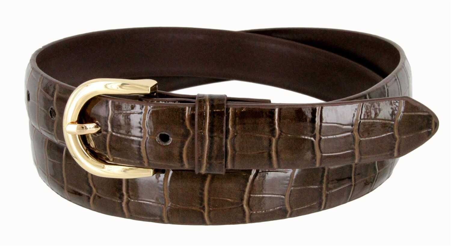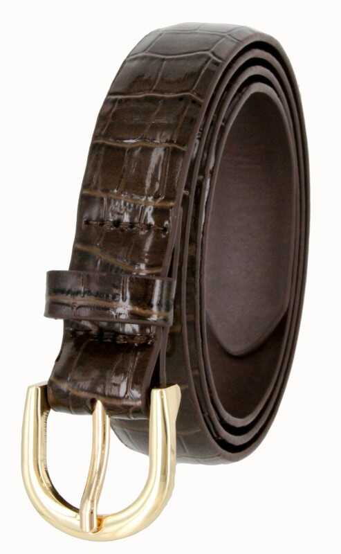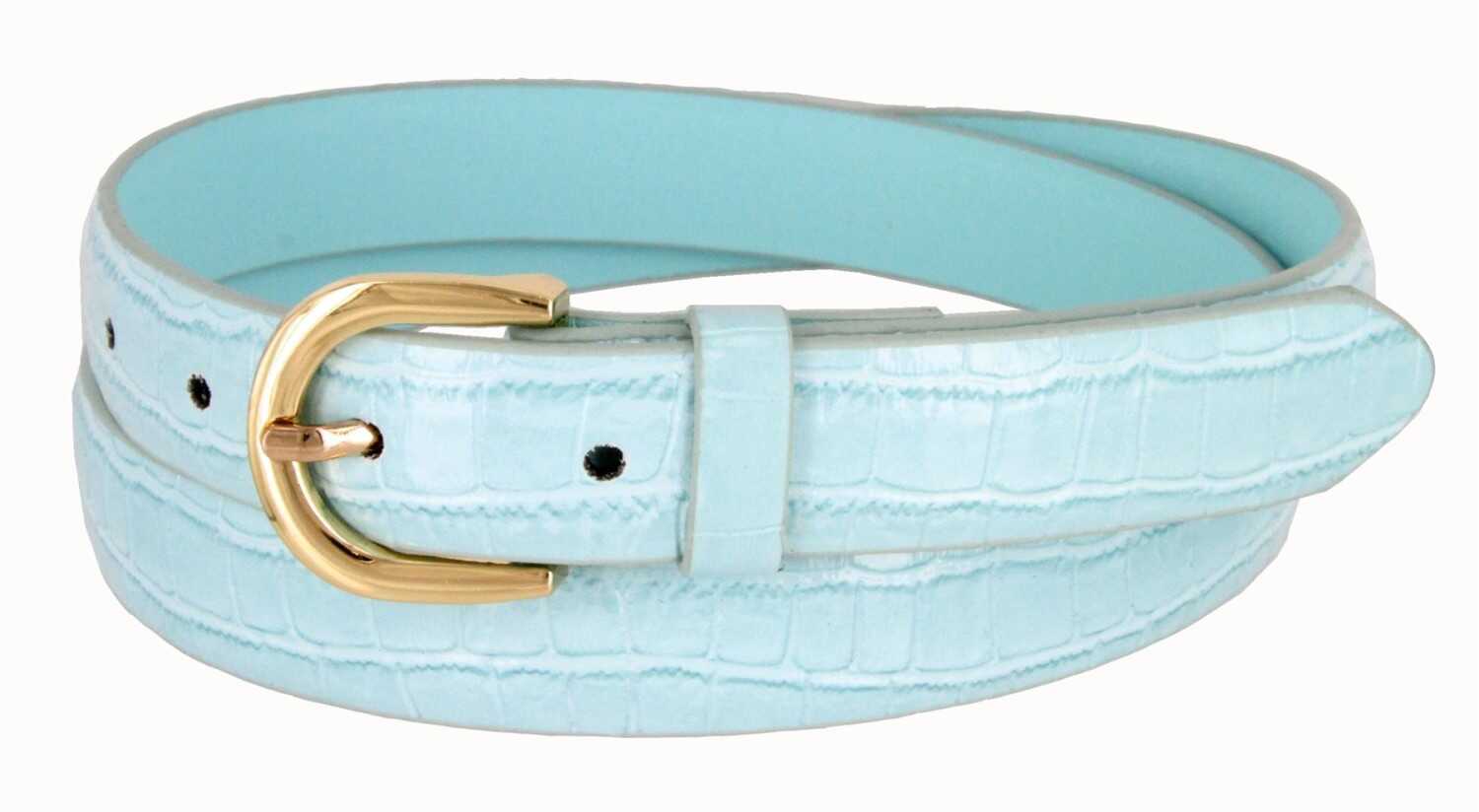 Women's Skinny Thin Alligator Embossed Genuine Leather Belt 1" (25mm) Wide