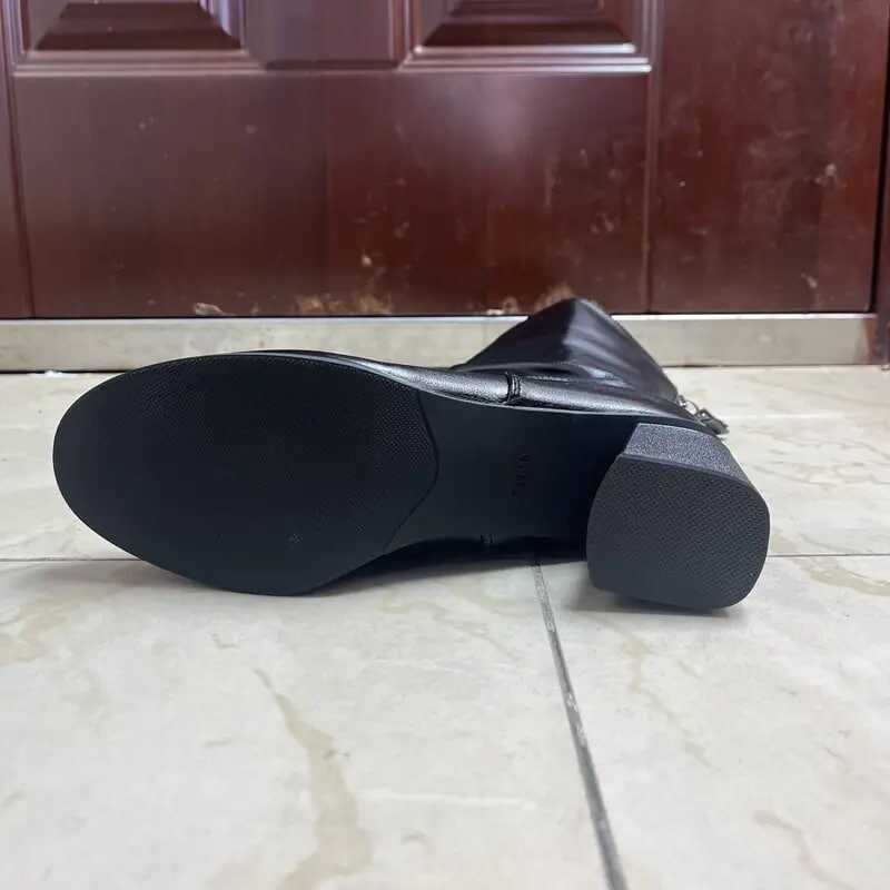 womens solid color boots back zipper chunky heel casual soft sole boots mid calf versatile winter shoes details 3womens solid color boots back zipper chunky heel casual soft sole boots mid calf versatile winter shoes details 3